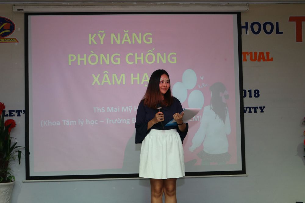 Phần chính của chương trình, Thạc sĩ Mai Mỹ Hạnh đã có những chia sẻ hết sức cởi mở và sâu sắc về chủ đề Xâm Hại, Quan Hệ Tình Dục cho các bạn học sinh. Bằng lôi dẫn dắt hài hước, dí dỏm, cô Hạnh đã hoàn toàn xóa bỏ những ngại ngùng của các bạn học sinh khi chia sẻ về chủ đề này, đặc biệt là xóa tan suy nghĩ “Học sinh còn nhỏ, nói những điều này chưa phù hợp” mà thay vào đó là suy nghĩ phải biết càng sớm càng tốt để có thể phòng tránh những trường hợp ngoài ý muốn xảy ra.
