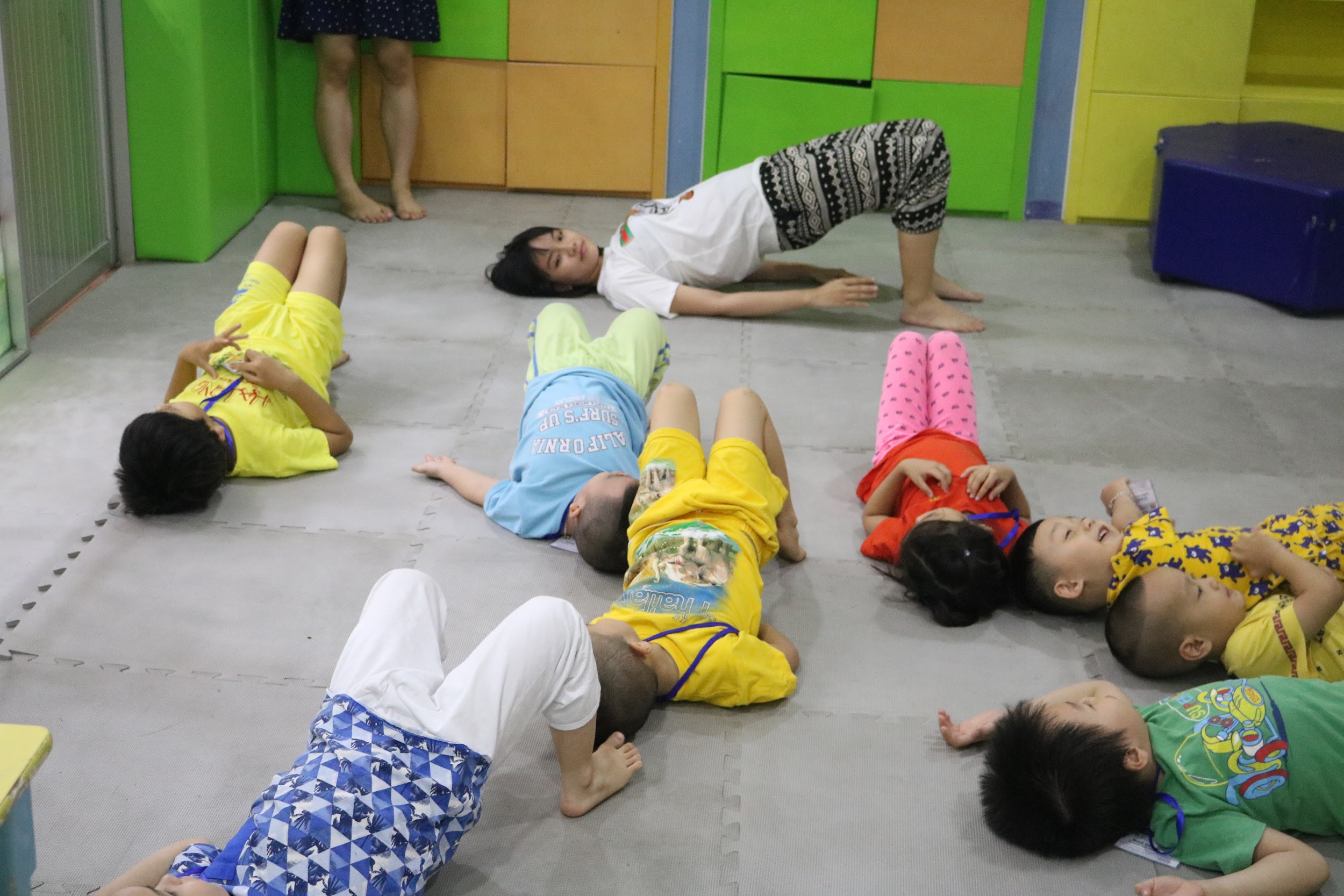 Nổi bật là lớp YOGA KID của cô Linh, các bé sẽ có cơ hội rèn luyện sức khỏe bằng các động tác có sức dẻo dai đầy vui nhộn, thông qua các hình tượng như cái cầu, con rắn, con chó, con mèo, hình chữ,….. Các bé đều phấn khích qua những động tác thú vị, giúp cải thiện sức mạnh cơ và tính linh hoạt thần kinh, tăng cường chức năng tuần hoàn, hô hấp, hệ thống miễn dịch của trẻ em.