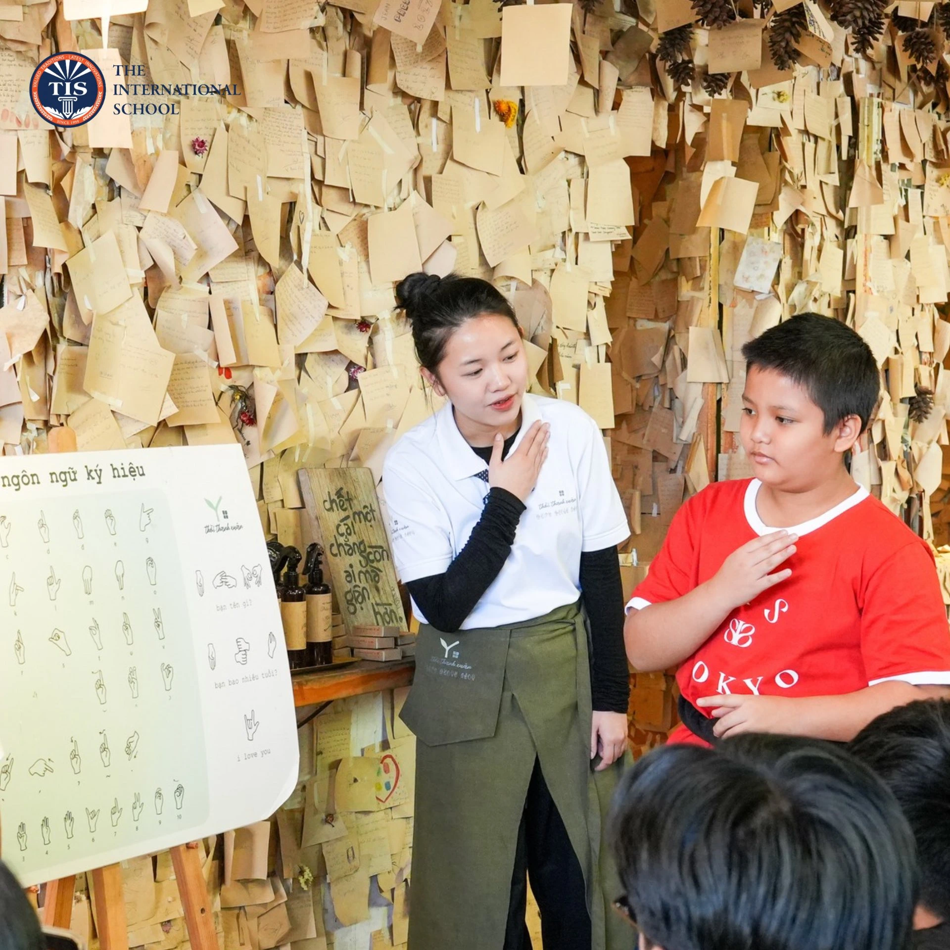 Tại “Quán của thời thanh xuân”, các TISers được học ngôn ngữ ký hiệu cơ bản để giao tiếp cùng những anh chị khiếm thính. Đây là một bài học đặc biệt về sự thấu cảm, tôn trọng và khả năng kết nối giữa con người với con người – những giá trị cốt lõi mà TIS luôn mong muốn nuôi dưỡng ở học sinh.